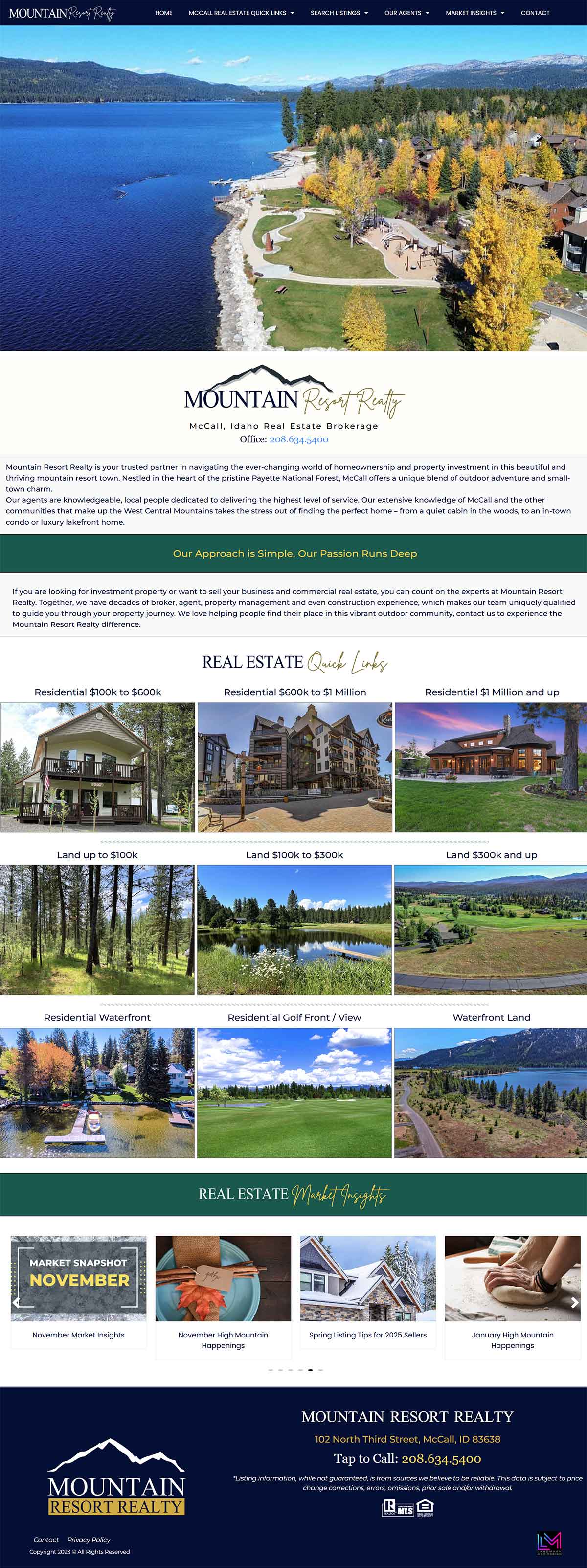 Comprehensive agent bios and easy-to-access contact information make it simple for clients to connect, while stunning high-resolution photography highlights the unique appeal of the McCall area. Just look at that view!