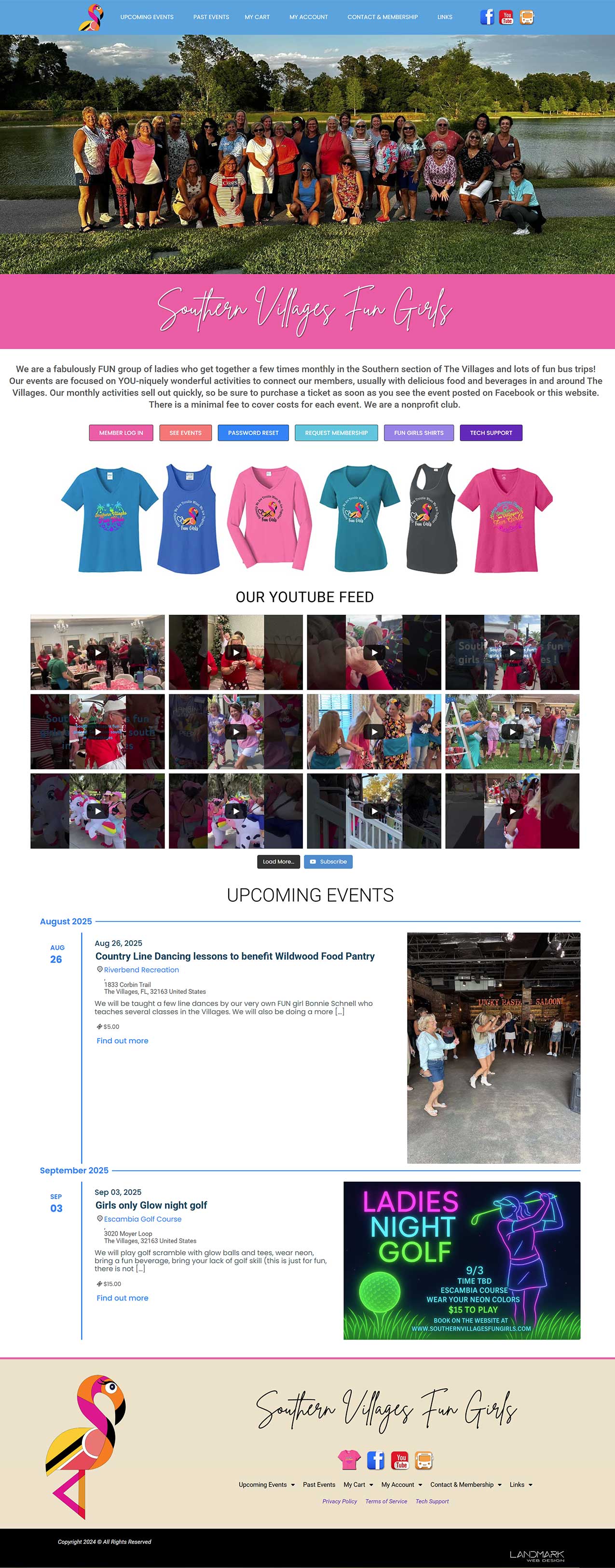This is a powerhouse of a website. It features online event listings and ticketing using Square for smooth, user-friendly payment processing. Event details are available exclusively to members and users can browse upcoming events in either a list or calendar view. You’ll also find links to social media and merch.